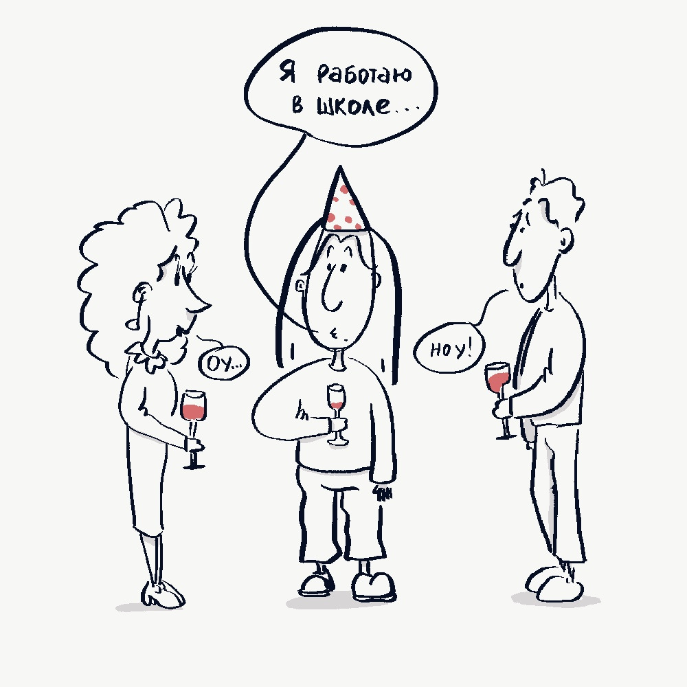 Однажды я пришла на вечеринку в честь дня рождения друга. Такое вообще редко бывает, когда учительницу зовут прям на вечеринку (помните, выступление Кена Робинсона, он уже про это шутил), хотя, возможно, это только про меня, кажется, у меня в целом мало друзей. Там было много новых людей. Обычно мне нужно немножко, но чаще множко времени, чтобы привыкнуть к пространству, начать говорить и знакомиться. Так вот в один момент, когда мой бокал был наполовину пуст, я оказалась в кругу людей, которые неистово (ну мне так казалось, скорее всего они знакомились друг с другом, как это делают обычные люди) рассказывали, кто есть кто. И вот очередь дошла до меня. “Я, - говорю, отхлебнув из бокала, - учительница”. - “Ого, вау, ничего себе! А что ты преподаешь?” - “Литературу”. И тут открылся ящик Пандоры.